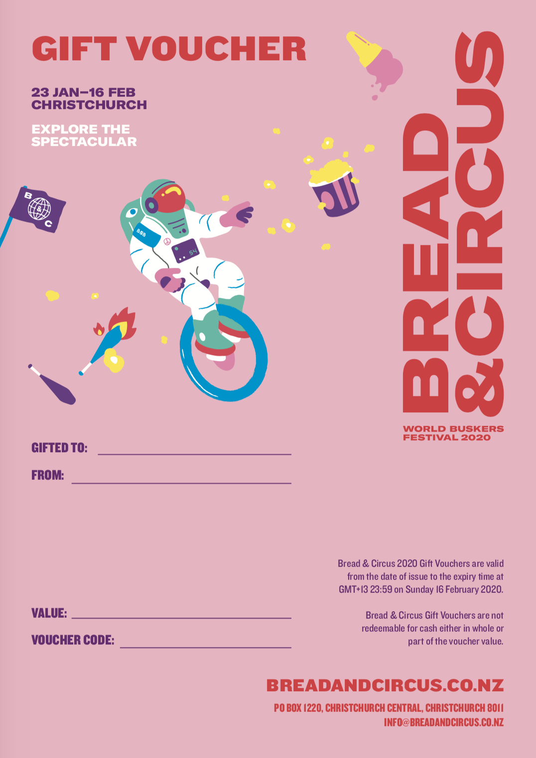 Bread & Circus 2020 Gift Vouchers are valid from the date of issue to the expiry time Sunday 16 February 2020. Full Terms and Conditions here.